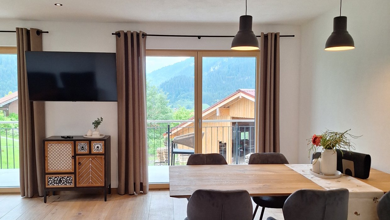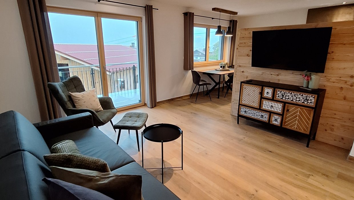 Sie ist mit Ihrer Größe von ca. 60 qm und einem großen Südbalkon perfekt für 2 Personen, die einen erholsamen Urlaub im Allgäu genießen möchten.